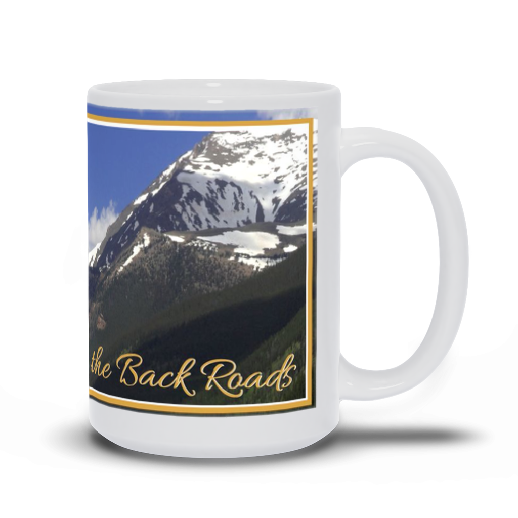 Discover the perfect blend of inspiration and functionality with a "Take the Back Roads" mug featuring a.d. elliott's photo "Mount Bierstadt," This 15-ounce mug is not only a stylish addition to your kitchen but also dishwasher-safe for easy cleaning.
