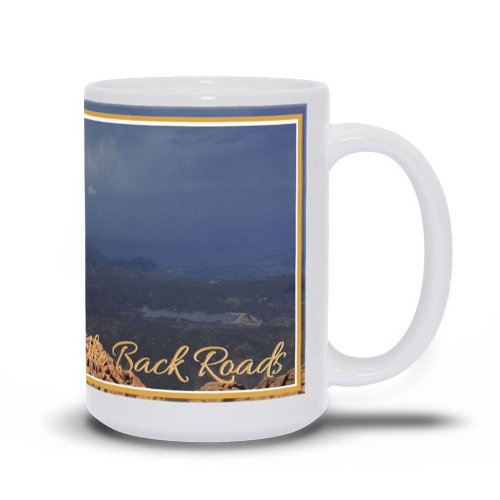 Discover the perfect blend of inspiration and functionality with a "Take the Back Roads" mug featuring a.d. elliott's photo "Pikes Peak," This 15-ounce mug is not only a stylish addition to your kitchen but also dishwasher-safe for easy cleaning.