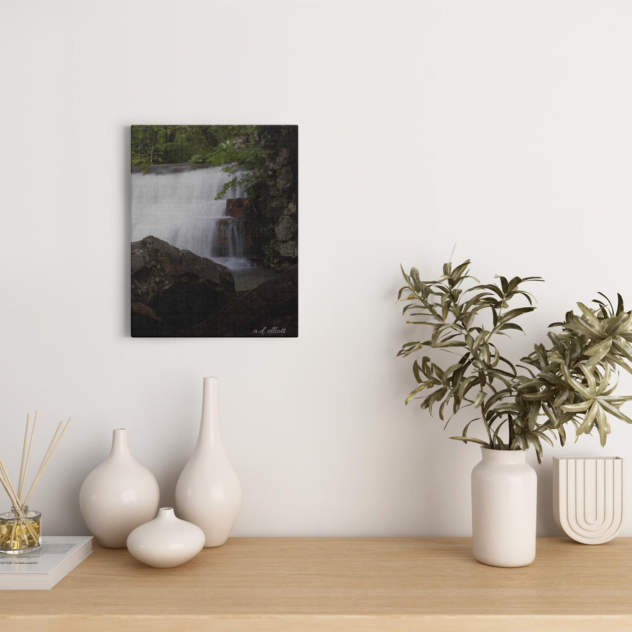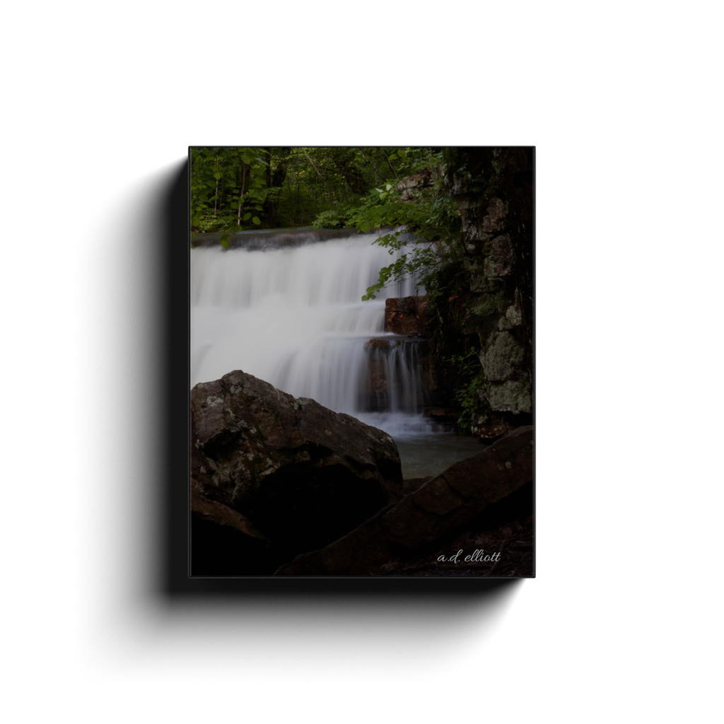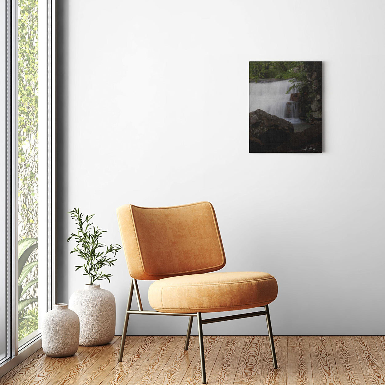 Experience the serene beauty of Fenwick Mines Fall, captured in a stunning long-exposure photograph by a.d. elliott. This breathtaking image showcases a tranquil waterfall nestled among lush trees and rugged rocks, inviting you to immerse yourself in nature's splendor. Available in print sizes ranging from 8x10 to 24x30, each piece is crafted on high-quality, artist-grade stock and elegantly folded around a lightweight frame, ensuring a gallery-ready presentation. Please allow 14 to 21 days for delivery to bring this captivating scene into your home.