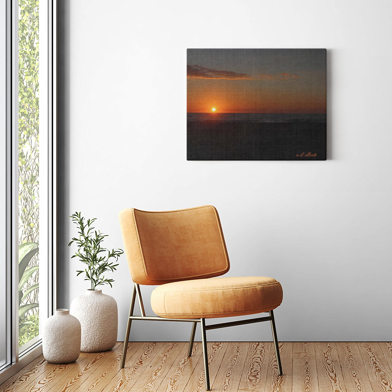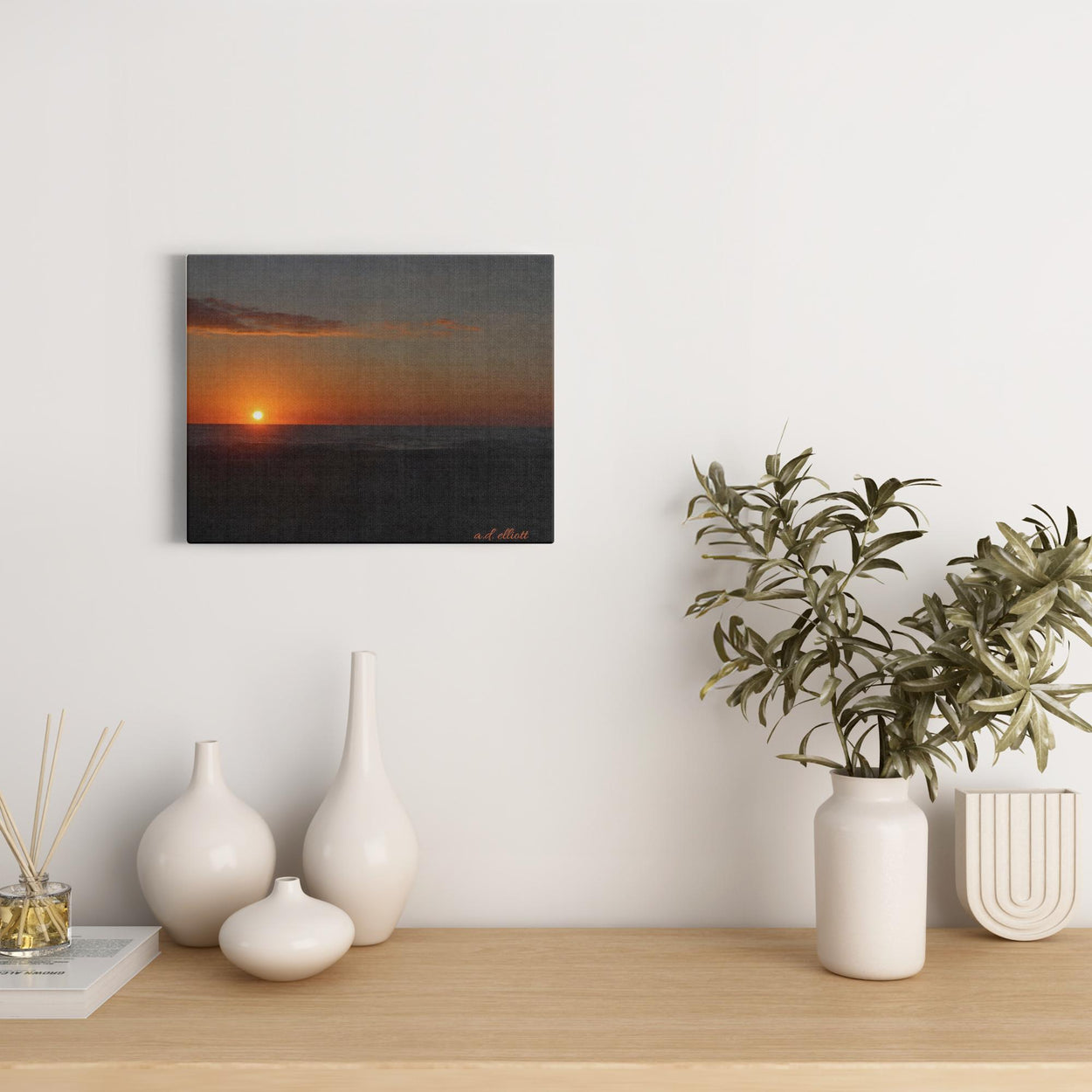 Experience the serene beauty of a sunset on the beach with this stunning canvas print by a.d. elliott, featuring a breathtaking view of sunrise on Virginia Beach. Perfectly capturing the tranquil hues of dusk and available in sizes ranging from 8x10 to 24x30, this artwork invites a sense of calm and relaxation into any space.